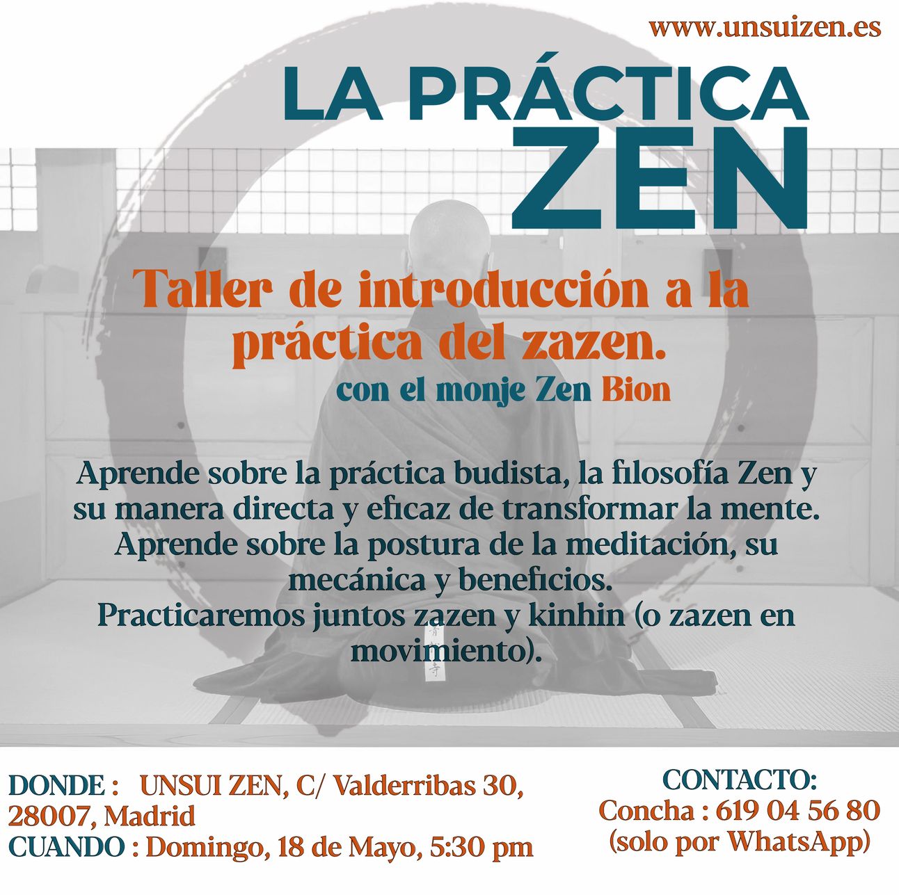 El 18 de Mayo, a las 5:30 pm, en Unsui Zen, Madrid